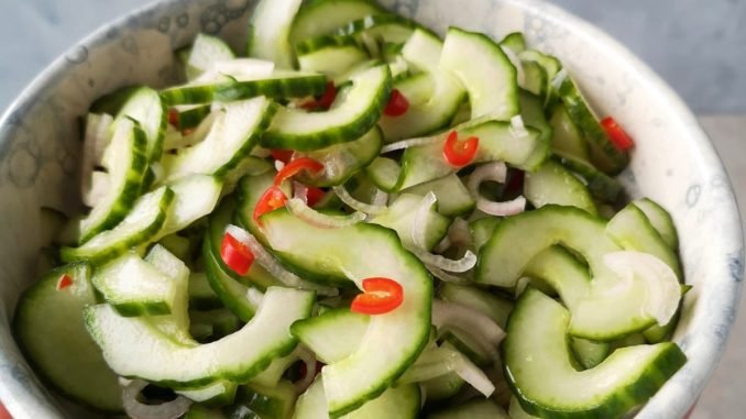 Huisgemaakte Indonesische zoetzure salade van komkommer en ui.