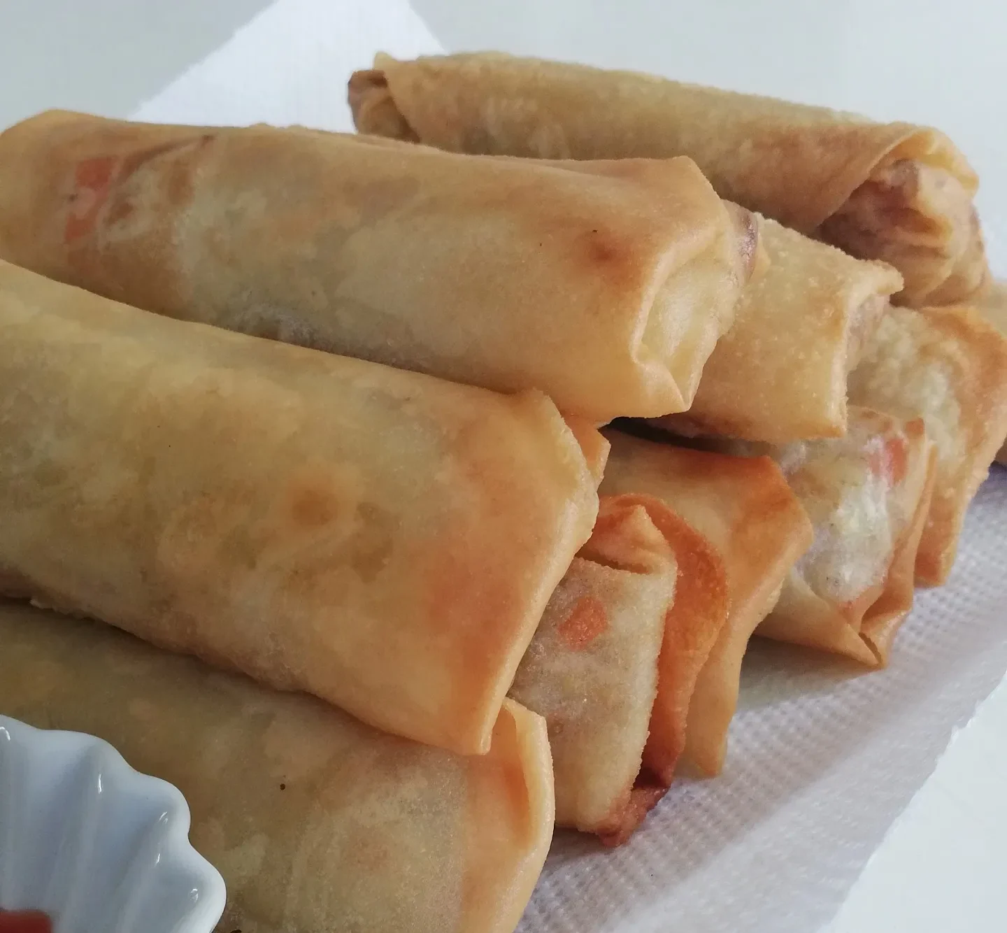 Rijk gevulde loempia’s met gekruid kipgehakt. Vers bereid en klaar om zelf af te bakken.